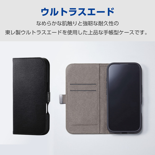 エレコム PM-A25APLFUSBK iPhone 17 ケース 手帳型 カバー マグネット フラップ ウルトラスエード ブラック