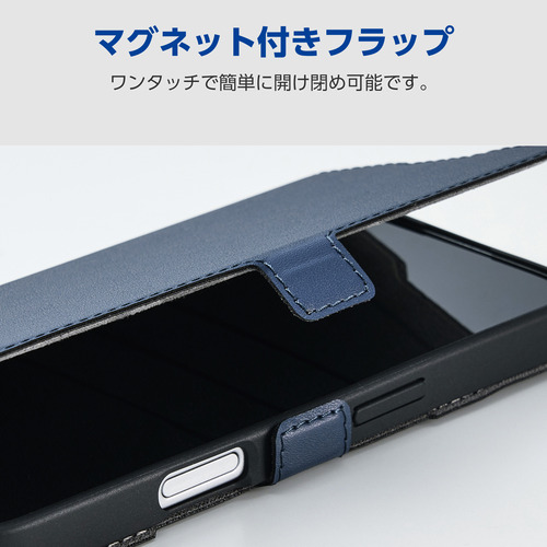 エレコム PM-A25APLFY3NV iPhone 17 ケース レザー カバー 手帳型 マグネット フラップ ネイビー