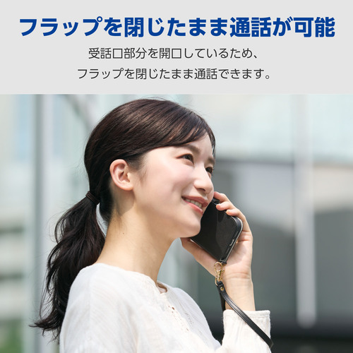 エレコム PM-A25APLFY4BK iPhone 17 ケース レザー カバー 手帳型 マグネット フラップ ハンドストラップ付 ブラック