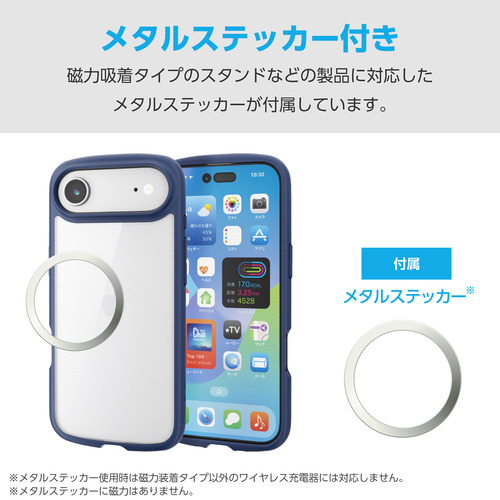 エレコム PM-A25BTSLFCNV iPhone Air ケース 磁気吸着対応メタルステッカー付 TOUGH SLIM LITE ネイビー
