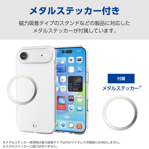 エレコム PM-A25BUCTCR iPhone Air ケース 磁気吸着対応メタルステッカー付 クリア