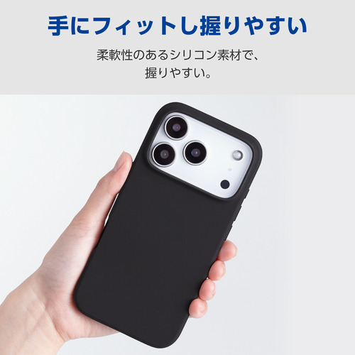 エレコム PM-A25CHVSCCBK iPhone 17 Pro ケース ハイブリッドシリコン カバー アンチダストコート ブラック