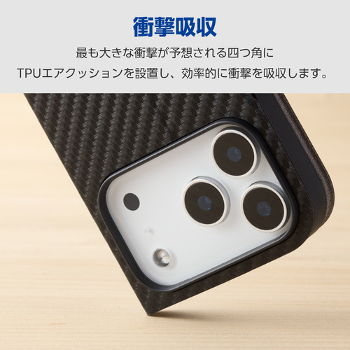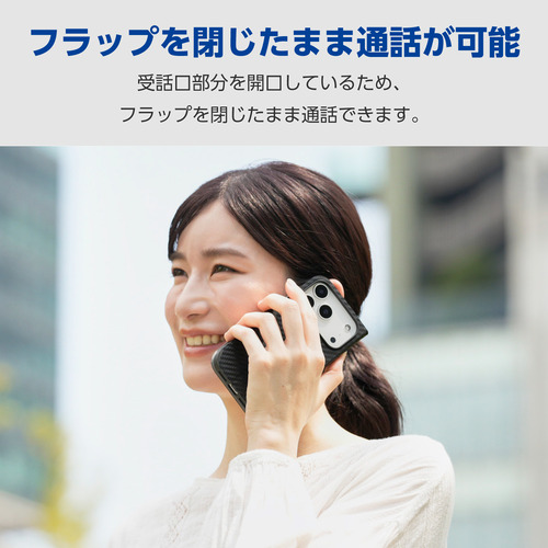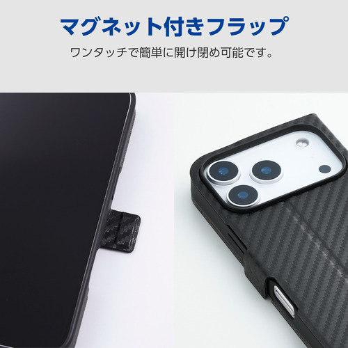 エレコム PM-A25CPLFUCB iPhone 17 Pro ケース レザー カバー 手帳型 マグネット フラップ UltraSlim カーボンブラック