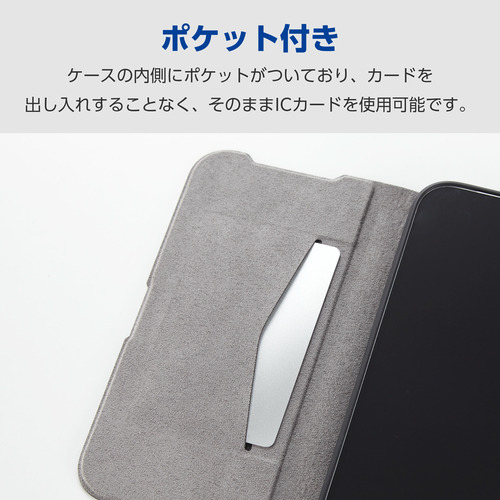 ●フラップの内側に、メモやカードなどが収納できるカードポケットが付いています。カードを出し入れすることなく、そのままICカードを使用可能です。
