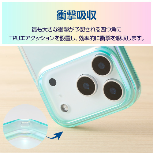 エレコム PM-A25CUCABU iPhone 17 Pro ケース 磁気吸着対応メタルステッカー付 オーロラデザイン ブルー