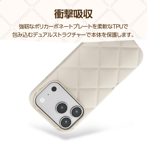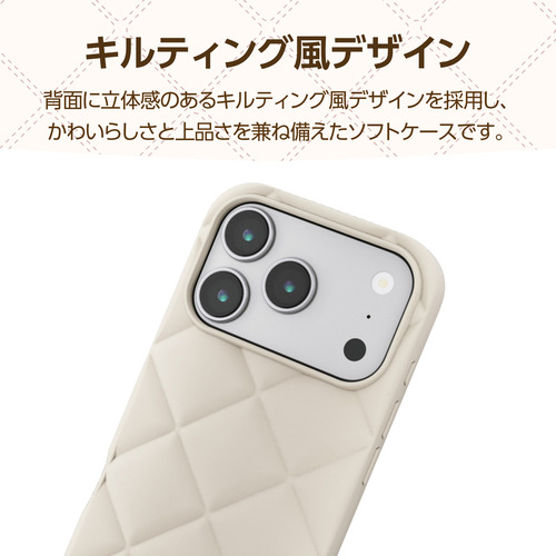 エレコム PM-A25CUCQBE iPhone 17 Pro ケース キルティング風デザイン ベージュ