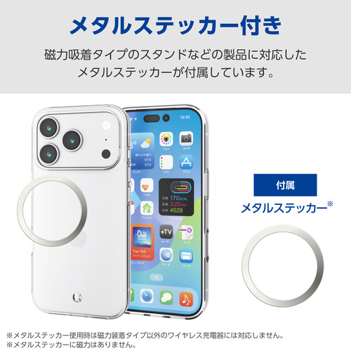 エレコム PM-A25CUCTCR iPhone 17 Pro ケース 磁気吸着対応メタルステッカー付 クリア