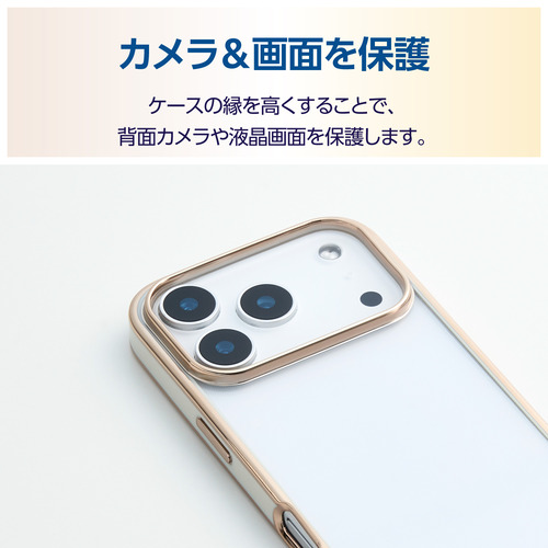 エレコム PM-A25CUCTMLGB iPhone 17 Pro ケース 磁気吸着対応メタルステッカー付 メタリックライン グレージュ