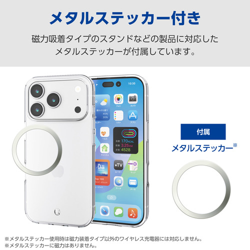 エレコム PM-A25CUCT3CR iPhone 17 Pro ケース 磁気吸着対応メタルステッカー付 クリア
