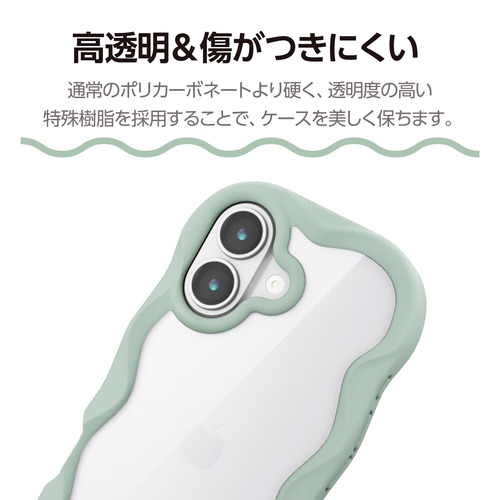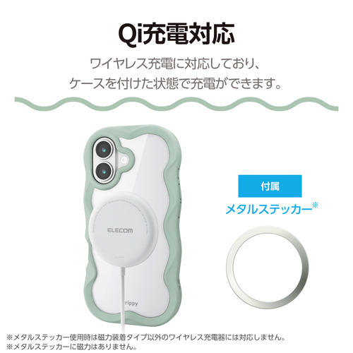 エレコム PM-A25AFCWAVEGN iPhone 17 ケース ハイブリッド カバー 磁気吸着対応メタルステッカー付 Grippy グリーン