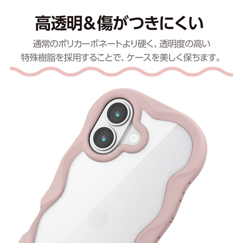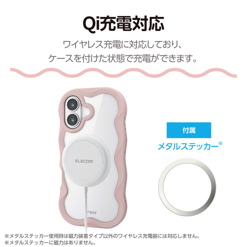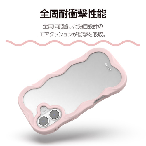 エレコム PM-A25AFCWAVEPN iPhone 17 ケース ハイブリッド カバー 磁気吸着対応メタルステッカー付 Grippy ピンク