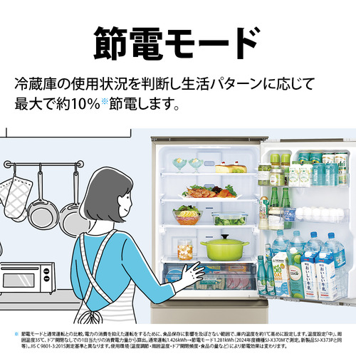 シャープ 冷蔵庫 374L 左右付替 3ドア 幅60cm どっちもドア 節電モード ナノ低温脱臭触媒 SJX373PN ゴールド系