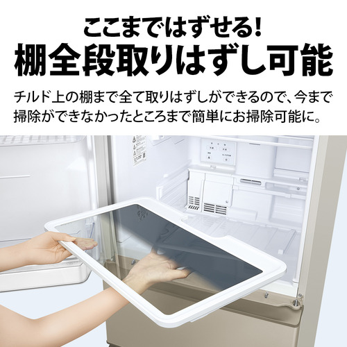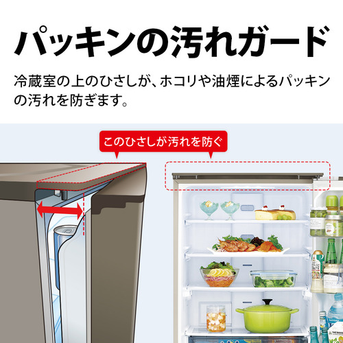 ひとつのドアが右にも左にも開く、シャープ独自のどっちもドア。左右近い方からサッと食品を出し入れできて便利です。