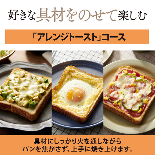 象印独自の緻密な温度コントロールで、手間なくおいしいトーストが焼けます。焼き色が濃くならない温度帯をキープしながら、表面をやさしく焼いて「サクッ」とさせたら、高温に切り替えて、パンの内側の水分をしっかりと閉じ込めたまま、急速で焼き上げます。ひとくちかじるとサクッとした食感とともに香ばしさが広がり、中はふんわりとあたたかく、口いっぱいにおいしさを感じる絶品トーストです。