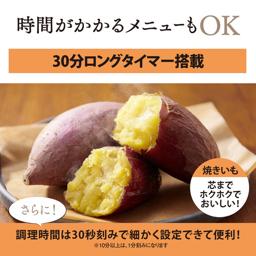 調理時間が長いメニューや焼きいもにも対応。30秒刻み※で設定ができます。※10分以上の設定の場合は、1分刻みとなります