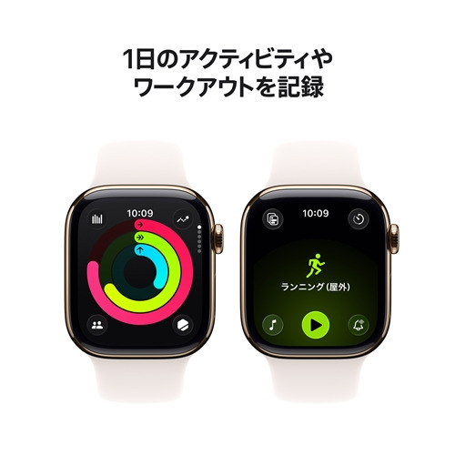 アップル(Apple) MF8X4J/A Apple Watch Series 11(GPS + Cellularモデル) 42mm ゴールドチタニウムケースとライトブラッシュスポーツバンド M/L