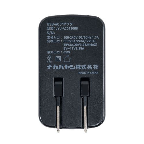 出力電圧:5V3A/9V3A/12V3A/15V3A/20V3.25A/PPS 5V〜11V3.25A