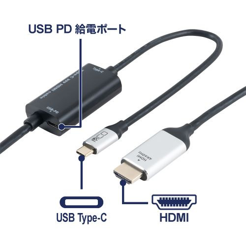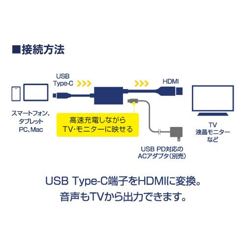 ナカバヤシ USD-P4K10BK USB Type-C - HDMI変換ケーブル 4K60Hz対応 USB PD対応 スマホやタブレットの画面をテレビで見られる