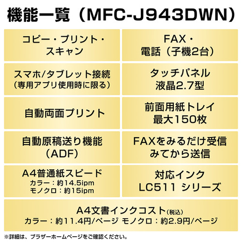 ブラザー MFC-J943DWN プリンター A4インクジェット複合機 FAX 電話 子機2台 Wi-Fi Windows Mac ChromeOS対応