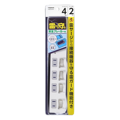 ヤザワ H4BKS442WH 雷ガード付4個口節電タップ 個別スイッチ付き 2m ホワイト