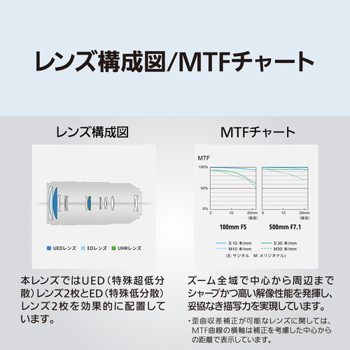 レンズ構成:12群19枚(UEDレンズ2枚、EDレンズ2枚、UHRレンズ2枚)