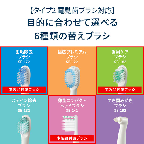 ご購入の際は必ずタイプをご確認いただき、タイプ2の替えブラシをご利用くだ さい。異なるタイプでは使用できません。
