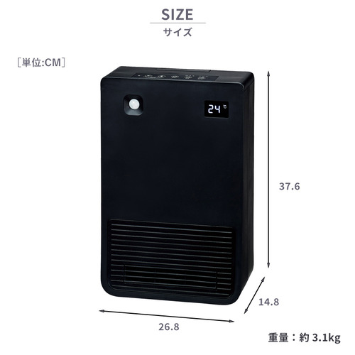●人感センサー搭載、温度設定可能なセラミックヒーター