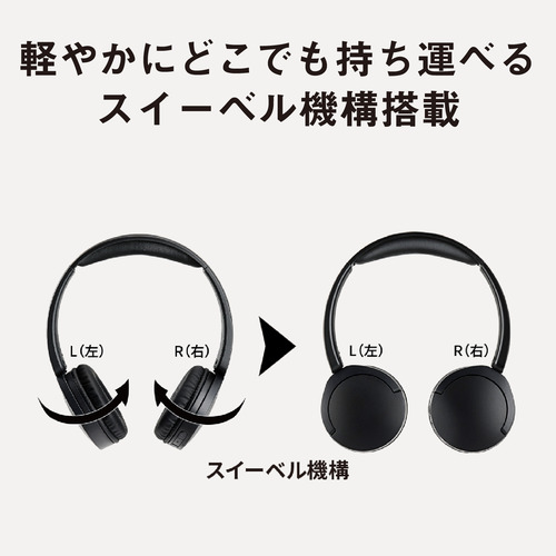 ・オンイヤータイプで締め付けや圧迫感なく、軽い着け心地。 ・約140gの軽量設計で、長時間使っても疲れにくい。 ・持ち運びのしやすさにもこだわったスイーベル機構