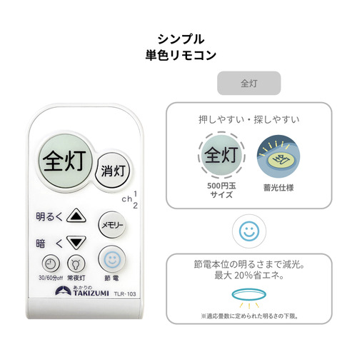●ボタンが大きく使いやすいリモコンで、明るさの調整が可能