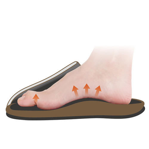 特別設計インソールが足裏をしっかりと支え、血行を促進。長時間の使用でも快適さが持続します。