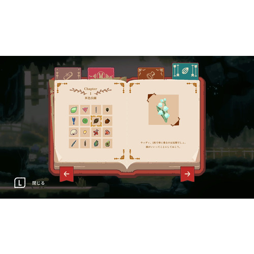 冒険で手に入る花や種など、様々なアイテムは収集要素としてノートに記録されます。