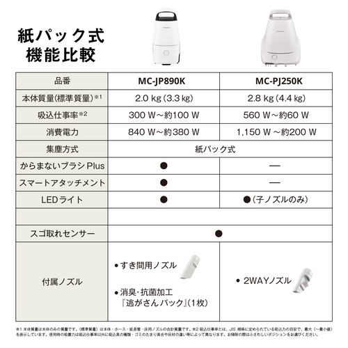 パナソニック MC-JP890K-W 紙パック式キャニスター掃除機 スゴ取れセンサー搭載 ホワイト