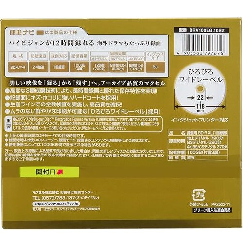 マクセル BRV100EG.10SZ ブルーレイディスク 録画用BD-R XL 1回録画 100GB 2〜4倍速 10枚 イエロー