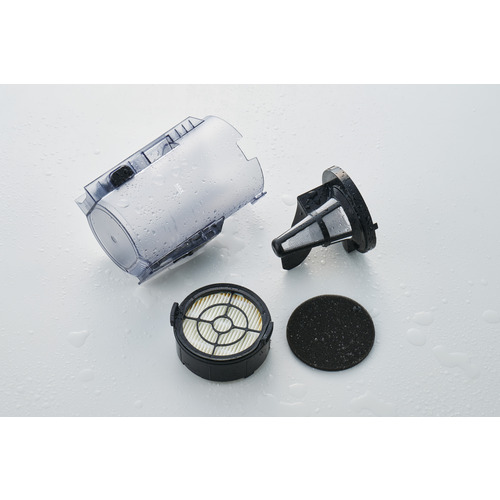 ゴミがたまりやすいブラシやフィルターも簡単に外せ、楽にメンテナンスできます。フィルターやダストカップは水洗い可能。