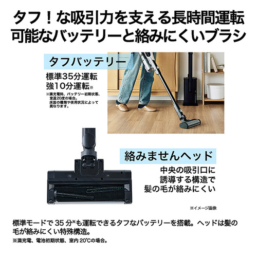 ●タフ!な吸引力を支える長時間運転可能なバッテリーと絡みにくいブラシ