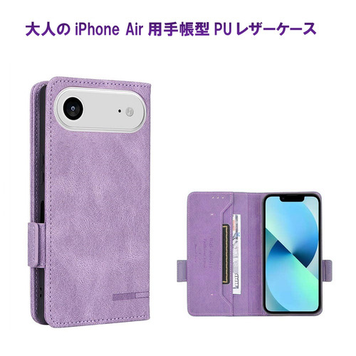 RM RM-8288-A-PP iPhoneAir用手帳型PUレザーケース パープル