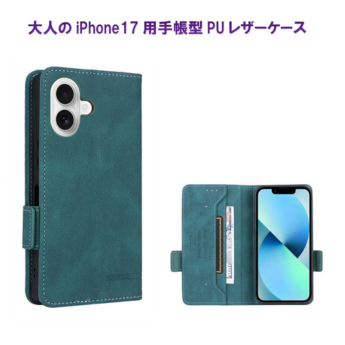 RM RM-8288-17-GR iPhone17用手帳型PUレザーケース グリーン