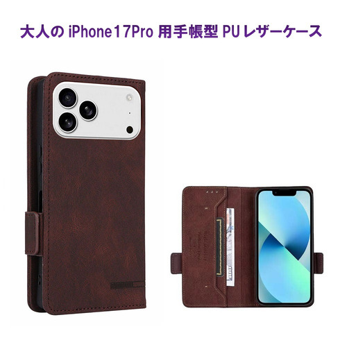 RM RM-8288-17P-BR iPhone17Pro用手帳型PUレザーケース ブラウン