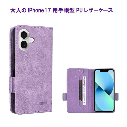 RM RM-8288-17-PP iPhone17用手帳型PUレザーケース パープル