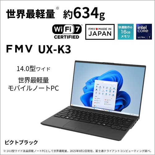 富士通 ノートPC FMV Note U FMVUXSK3BA[14型 | WUXGA | Core Ultra 7 | 16GB | 512GB | Windows 11 | Office H&B | ピクトブラック]