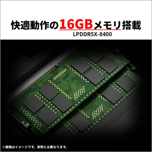 最新世代のプロセッサー「Core Ultra 7 255U」と高速・省電力メモリ「LPDDR5X-8400」の組み合わせは、従来世代と比べて処理速度やAI機能、グラフィックス性能が大幅に向上。