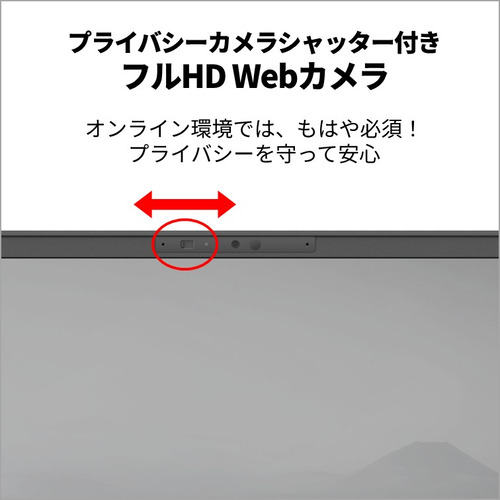 物理的にWebカメラのレンズを隠せる、プライバシーカメラシャッター搭載。動画やWeb視聴時、パソコンを使わない時には閉じておけば安心です。