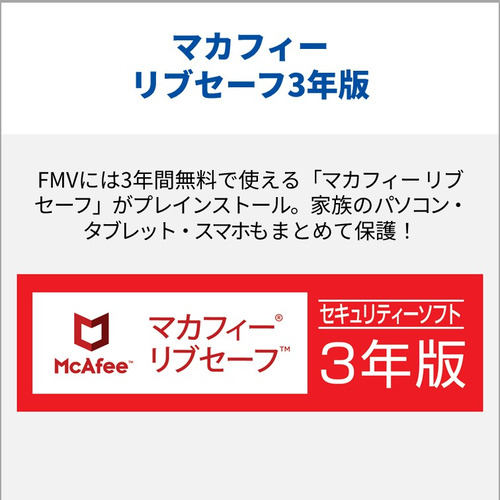 FMVには3年間無料で使える「マカフィー リブセーフ」がプレインストール。家族のパソコン・タブレット・スマホもまとめて保護できます。