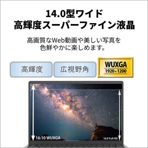 従来の縦横比16:9の画面よりも広い範囲を表示できる16:10の画面は、画像閲覧時の見やすさはもちろん、Office使用時の作業効率もアップします。