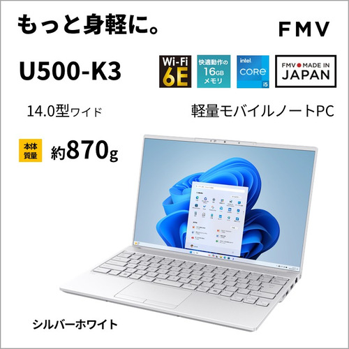 富士通 ノートPC FMV Note U FMVU500K3W[14型 | WUXGA | Core i5 | 16GB | 512GB | Windows 11 | Office H&B | シルバーホワイト]