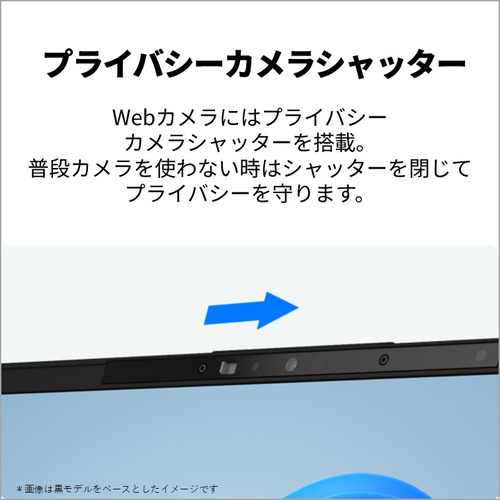 物理的にWebカメラのレンズを隠せる、プライバシーカメラシャッター搭載。動画やWeb視聴時、パソコンを使わない時には閉じておけば安心です。