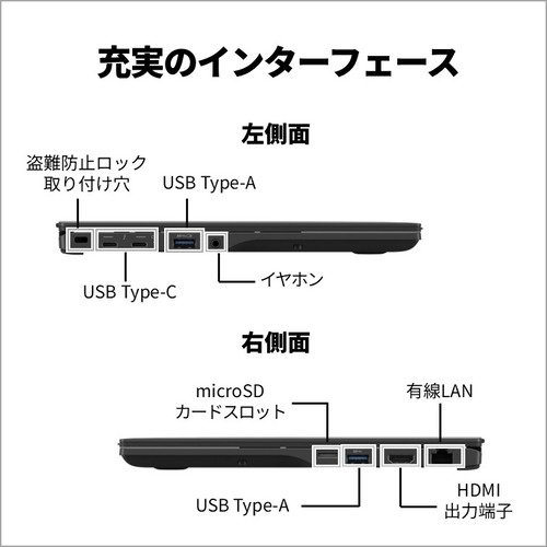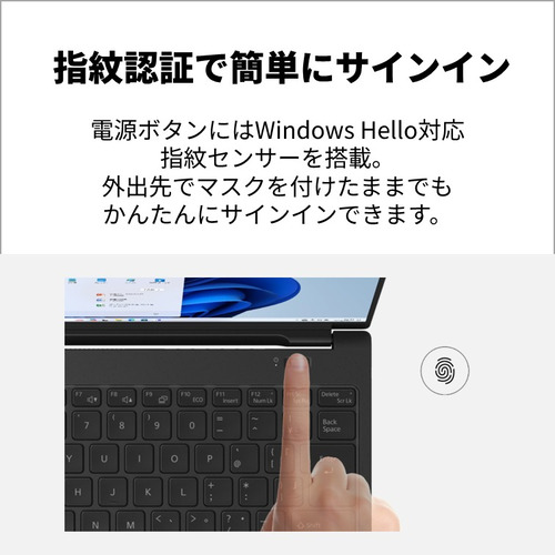 従来の13.3型と比較し17%の画面サイズアップを実現した、縦横比16:10の大画面14.0型ワイド液晶搭載。画面占有率93%を誇る超狭額縁で、プライベートにもビジネスにも大活躍です。