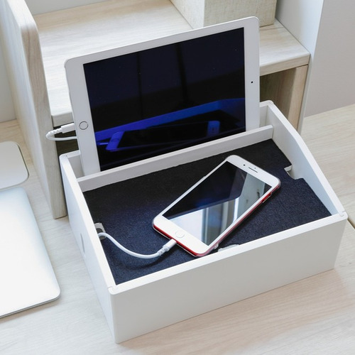 OAタップ等が収納でき、充電ケーブル等が整理できます。10インチサイズまでのタブレットやスマートフォンのスタンドとして使用できます。