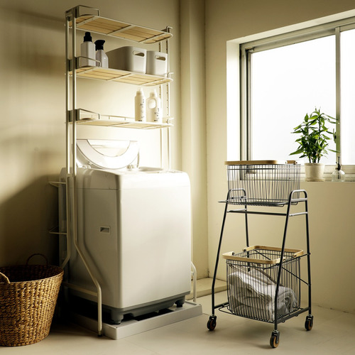 ●大きさの異なるバスケット棚が使いやすいワゴン。