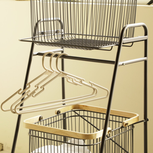 上段のカゴ下のバーは、物干し前のハンガーの仮置き場としても活用できます。
